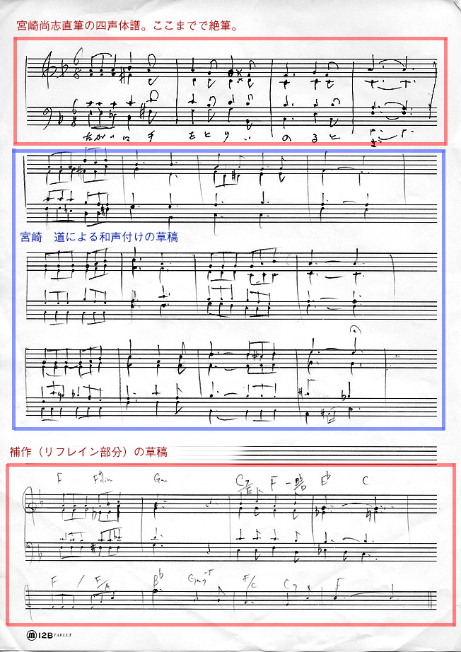 2003年5月4日、直筆譜に宮崎 道が残りの部分の和声付け及び補作し書き加えた。