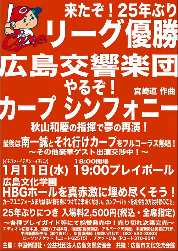 2017年1月11日「広島交響楽団 やるぞ!カープ・シンフォニー」に於ける交響曲「カープ・シンフォニー」の再演を記念して作曲者・宮ア 道が特別寄稿します。