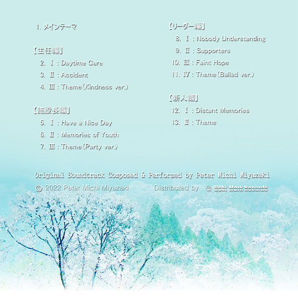 長編の劇場用映画でしたら、このような付け方はしません。そういう点で“手のひらの中にある映画館”は、今までやったことのないチャレンジになったものの、聞き直してみると今までやってきたことを総動員している事に気づきました。だからこのオリジナル・サウンドトラックは、正しく《私の音楽》です。
