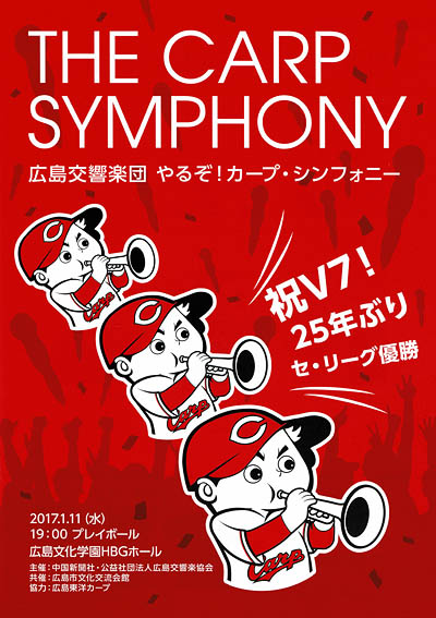 @“ú–{‚̃vƒ–ì‹…ƒ`[ƒ€EL“‡ƒJ[ƒv‚Ì25”N‚Ô‚è‚̃Š[ƒO—DŸ‚ð‹L”O‚µ‚ÄA‹{ú±“¹‚ª2008”N‚Éì‹ÈA“¯”N11ŒŽ24“ú‚ÉL“‡Œð‹¿Šy’c‚ª‰‰‰‚µ‚½ŠÇŒ·Šy‚Ì‚½‚ß‚Ìì•iuƒJ[ƒvEƒVƒ“ƒtƒHƒj[(The Carp Symphony)v‚ª–ñ‚W”N‚ÌÎŒŽ‚ðŒo‚Ä2017”N‚PŒŽ11“ú(…)AL“‡•¶‰»Šw‰€HBGƒz[ƒ‹‚É‚Äĉ‰‚³‚ê‚Ü‚·B‰‰‘t‚ÍL“‡Œð‹¿Šy’ciŽwŠöEHŽR˜aŒcjB